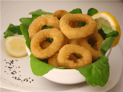 Características: Formado de calamar. Producto de rápida preparación pre frito con rebozado crujiente y dorado.