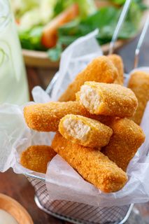 Merluza (Merluccius hubbsi) sin espinas (minced), rebozador (pan rallado), agua, aceite de girasol, harina de trigo enriquecida Ley Nº 25630 (hierro 30mg/kg, ácido fólico 2.2mg/kg, tiamina 6.3mg/kg, riboflavina 1.3mg/kg, niacina 13mg/kg), almidón de maíz, sal, nuez moscada, cebolla y ajo en polvo, pimienta blanca. Estabilizante: polifosfato de sodio.