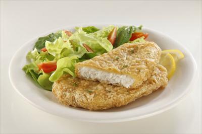 Características: Milanesa de merluza a la romana. Producto de rápida preparación, pre frito y rebozado.